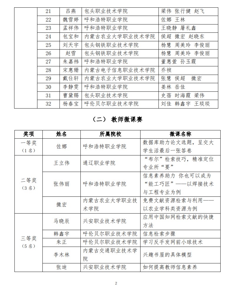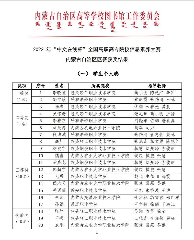 2022年“中文在线”全国高职高专院校信息素养大赛内蒙古自治区区赛获奖结果